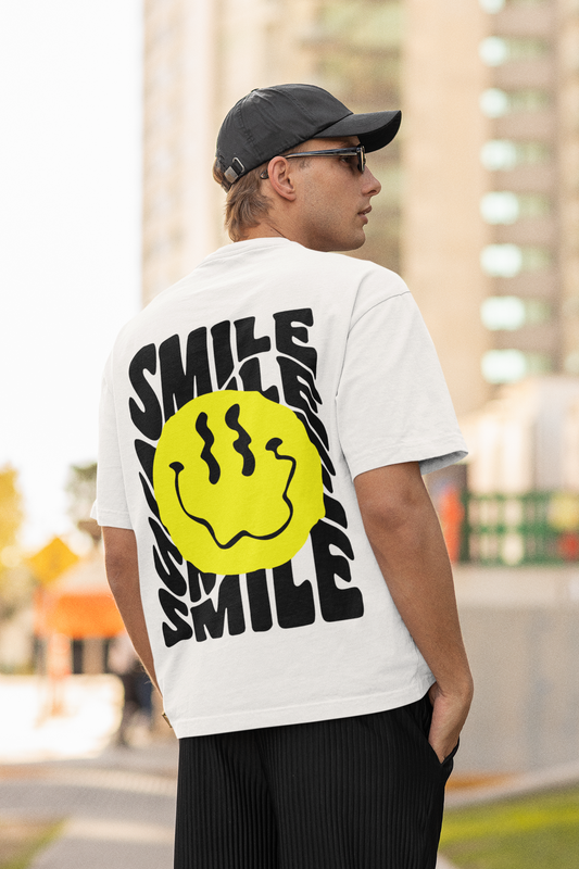 Smile Typography Full Print Oversized White Unisex T-shirt